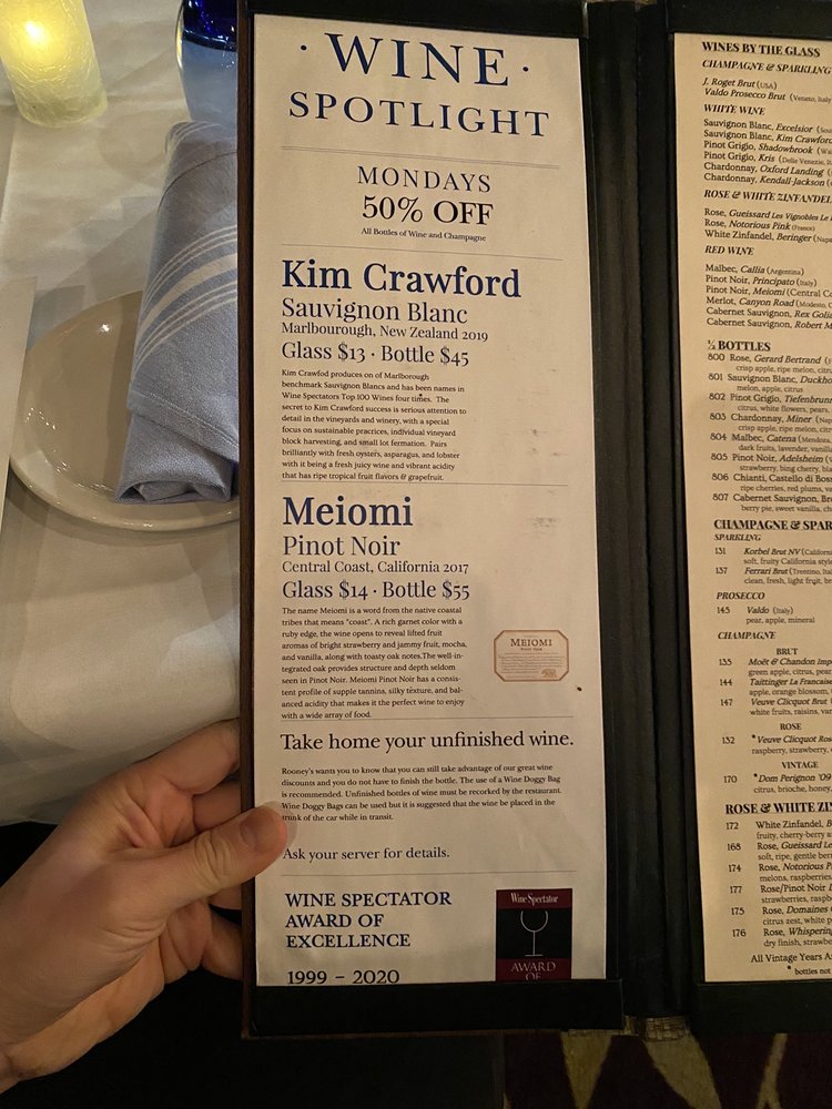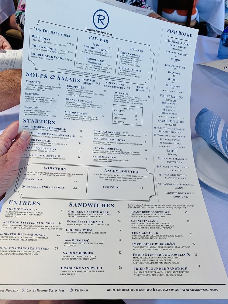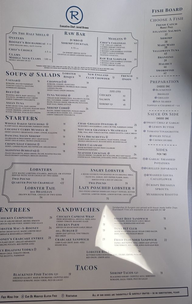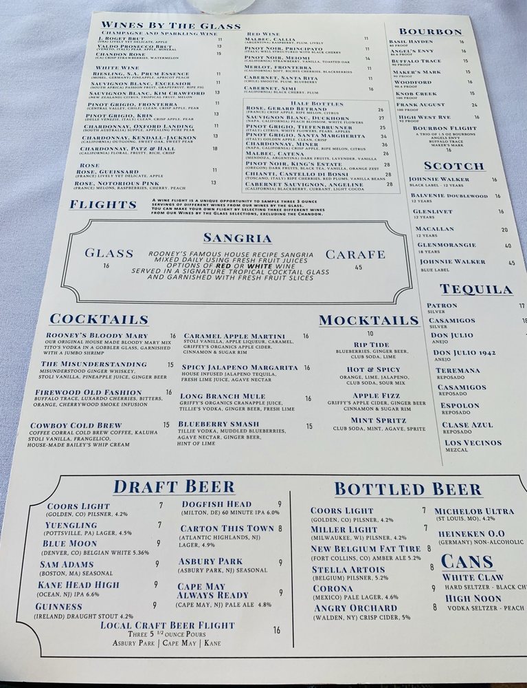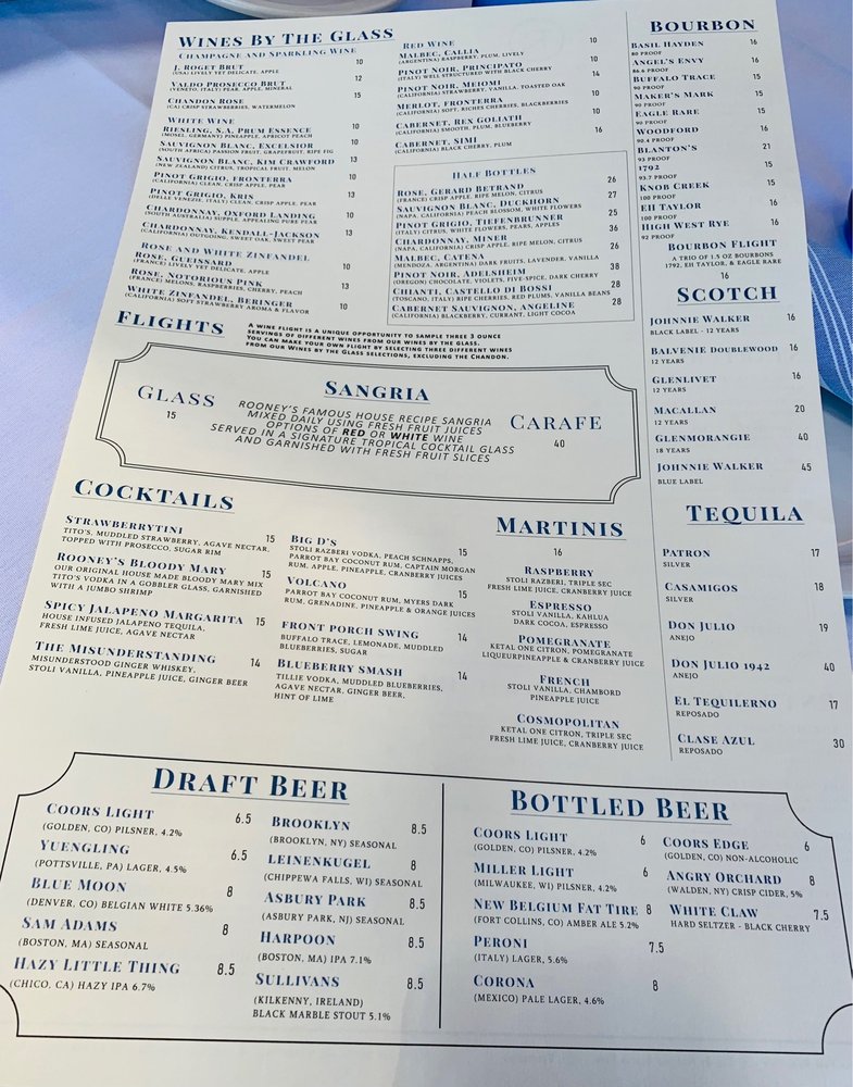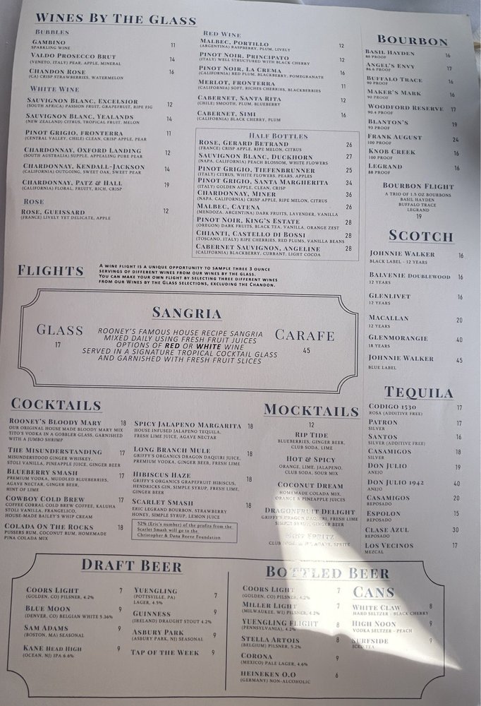 Rooney's Oceanfront Restaurant Menu (Update 2025)